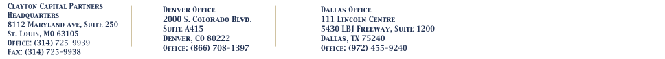 For more information about Clayton Capital Partners, visit www.claytoncapitalpartners.com or contact Paula Reeb at 314-725-9939.